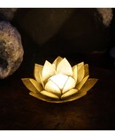 Dieser Teelichthalter hat eine tiefe Bedeutung, denn er ist in der Form eines heiligen buddhistischen Lotus gefertigt. Reine Reinheit, die einen ganzen Raum positiv erhellt, und Sie werden sich wohlfühlen, da das fantastische Licht eine großartige Atmosphäre im Raum schafft.