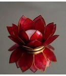 Kaarshouder in de vorm van een lotusbloem, gemaakt van capiz schelpen en afgewerkt met een goud randje.